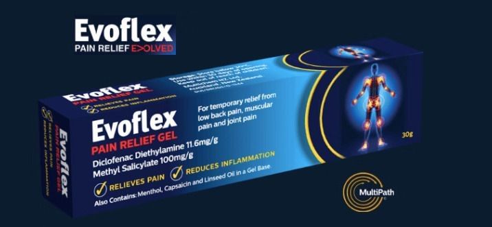 Evoflex contains 4 key ingredients including Diclofenac - a non-steroidal, anti-inflammatory drug (NSAID), Methyl Salicylate for a warming sensation that distracts from pain,