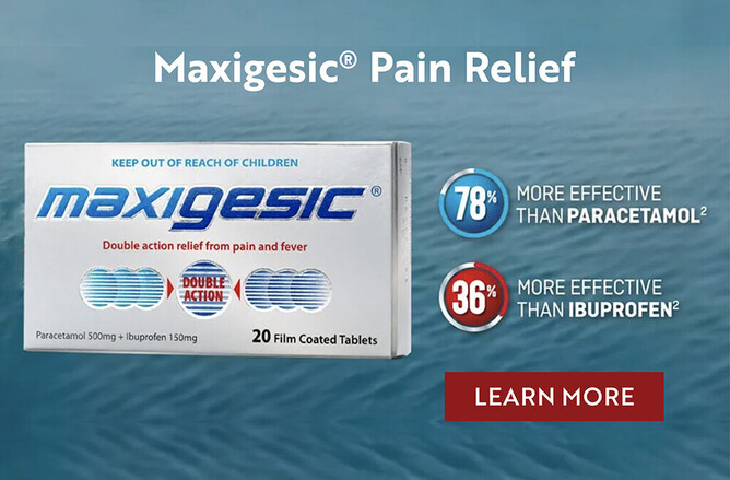 Maxigesic provides a unique patented combination of paracetamol 500mg and ibuprofen 150mg, that combines the power of these two ingredients to provide better pain relief than paracetamol or ibuprofen alone, and reduce fever and inflammation.
