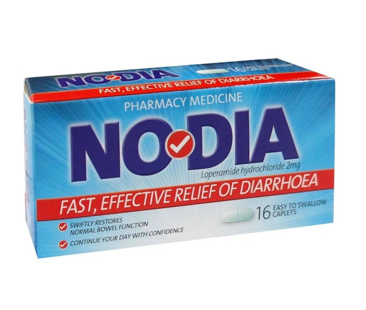 For the fast, effective relief of diarrhoea. Nodia works quickly to relieve diarrhoea by slowing down bowel movements. This helps reduce the urgency and frequency of trips to the bathroom, allowing your body time to reabsorb water and restore your normal bowel function.